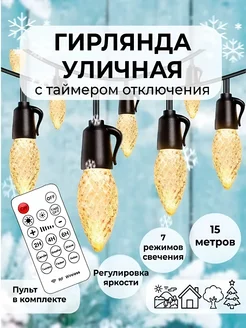 Гирлянда уличная Бахрома 50 метров желтый черный провод