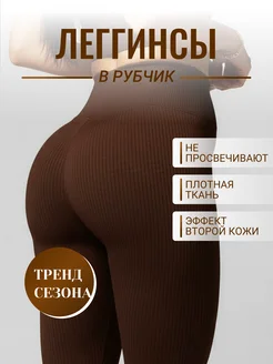 Леггинсы коричневые в рубчик утягивающие с высокой посадкой