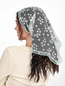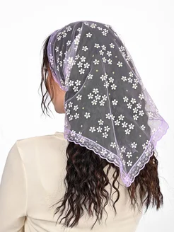 Платок-косынка кружевной прозрачный в церковь
