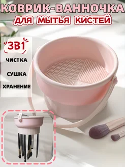 Коврик ванночка для мытья кистей и спонжей 3в1