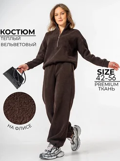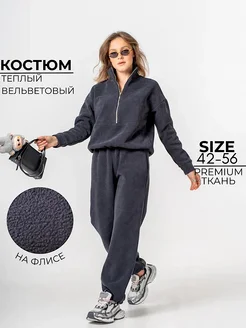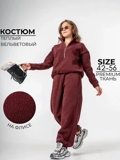 Костюм теплый на молнии вельветовый с начесом оверсайз