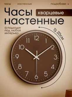 Часы настенные кухонные бесшумные, коричневые 20 см
