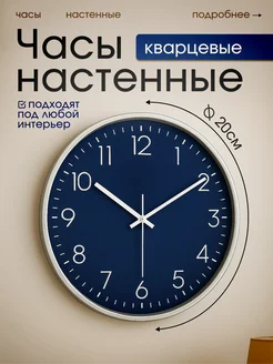 Часы настенные кухонные бесшумные, синие 20 см