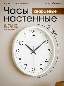 Часы настенные кухонные бесшумные, белые 20 см