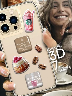 3д стикеры на телефон набор на чехол Эстетика коричневая