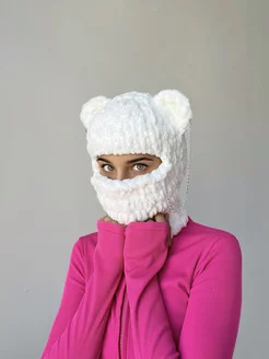 Зимняя балаклава с ушками вязаная