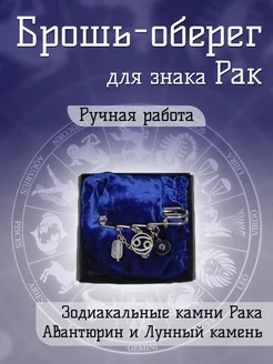 Брошь оберег для знака Рак с Авантюрином и Лунным камнем