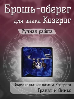 Брошь оберег для знака зодиака Козерог с Гранатом и Ониксом