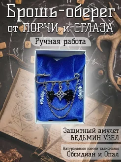 Брошь оберег от Порчи и Сглаза с Обсидианом и Опалом