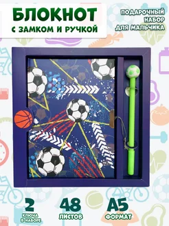 Блокнот Футбол с ручкой и замком, канцелярский набор