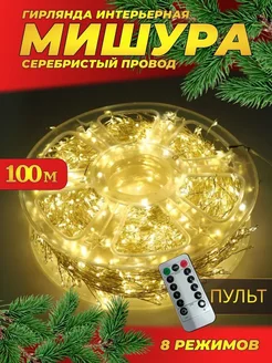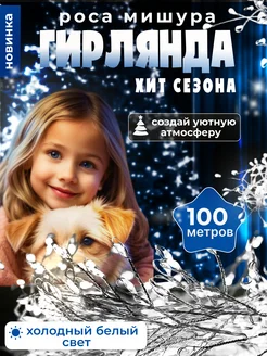Гирлянда роса мишура светодиодная 100 метров желтая