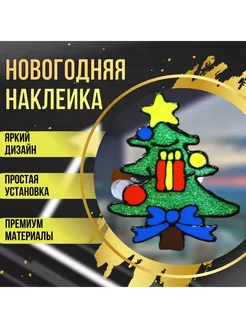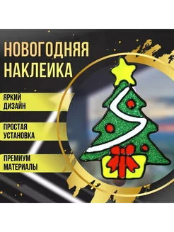 Новогодняя Ёлка с подарком, силиконовая наклейка 20х15