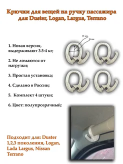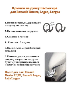 Крючки на ручку пассажира Renault Duster, Logan, Largus