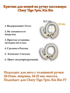 Крючки полупрозрач. 2 шт. на ручку для Chery Tigo, Kia Rio