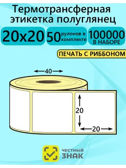 Самоклеящиеся термотрансферная этикетка Полуглянец 20х20
