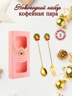 Набор кофейных ложек и вилок, 2 шт к новому году