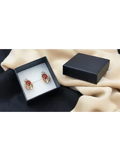 Оригинал.Италия Серьги с искусственным рубином и стразами