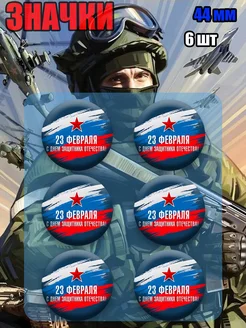 Значки 23 февраля День защитника Отечества. 6 шт 44 мм