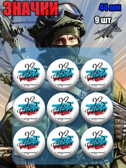 Значки набор 23 февраля День защитника Отечества. 9 шт 44 мм