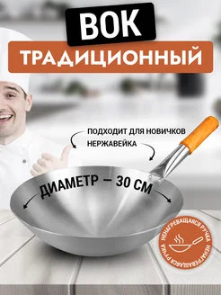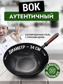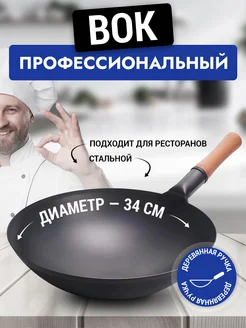 Сковорода вок WOK стальная Lux с плоским дном 34 см