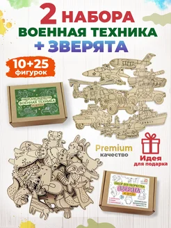 Два набора для творчества из дерева Зверята