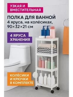 Полка для ванной 4 яруса, на колесиках пластиковая
