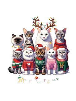 Наклейка на окно 2 шт Новогодние коты 30*30 двухсторонняя