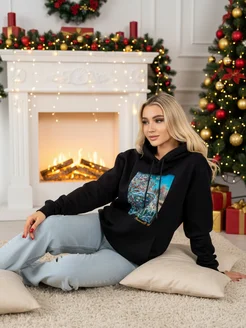 Худи оверсайз с ярким принтом ручной работы без начеса