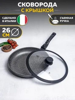 Антипригарная сковорода 26 см с крышкой и со съемной ручкой