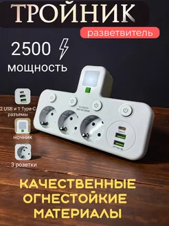 Тройник 3 розетки 3 Usb и 1 Type-c