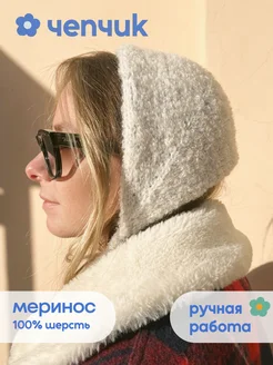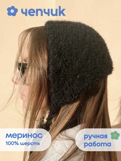 Чепчик с пайетками женский весна, вязаный, ручная работа