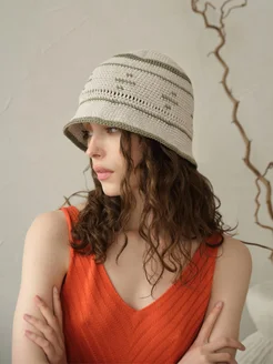 Панама летняя вязаная Wave handmade, бежевый, полынь