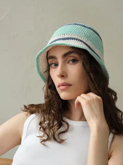 Панама летняя вязаная Wave handmade, мятный
