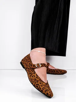 Балетки женские летние с ремешком леопардовые Мери Джейн