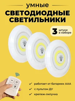 Маленький светильник на батарейках липучке в шкаф 3 шт