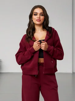 Бодовый спортивный костюм теплый зимний с зип-худи
