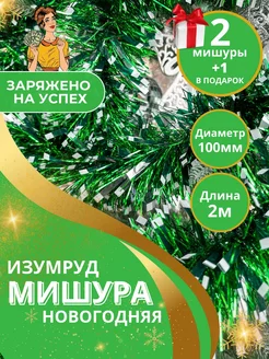 Мишура новогодняя на елку Изумруд зеленая с белым