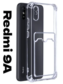чехол на xiaomi redmi 9a прозрачный с карманом для карты