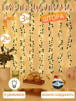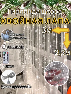 Новогодняя гирлянда штора хвойная лапа мишура 3х2.5