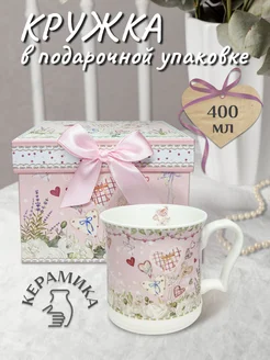 Кружка розовая с сердечками 400 мл в подарочной упаковке