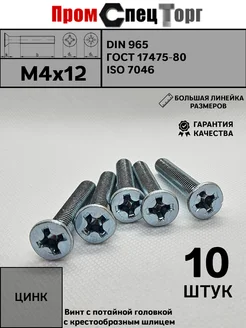 Винт с потайной головой DIN 965 М4х12 оцинкованный