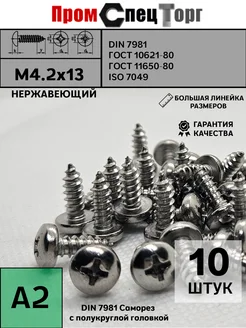 Саморез с полукруг М4.2х13 DIN7981 A2, нержавеющий