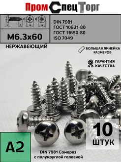 Саморез с полукруг М6.3х60 DIN7981 A2, нержавеющий