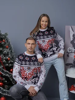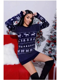 Туника платье оверсайз новогодняя домашняя с принтом олени