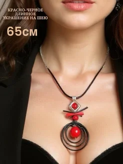 украшение на шею с крупной подвеской длинное на шнуре
