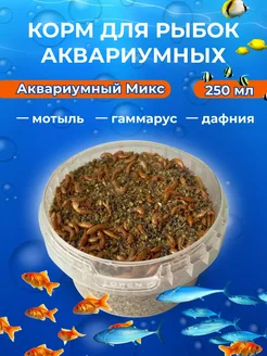 Микс для рыбок аквариумных дафния гаммарус мотыль 250мл