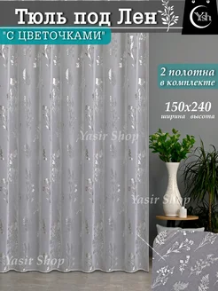 Тюль под лен с цветочками 150*240см в спальную 2шт
