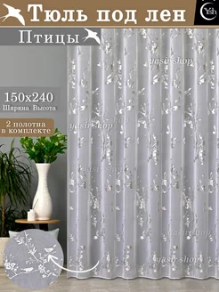 Тюль под лен с птицами 150*240см в гостиную 2шт