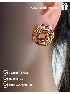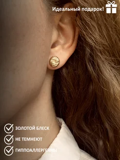 Крупные серьги гвоздики золотистые узелки