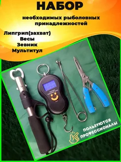 Набор рыбака, липгрип, весы, зевник, мультитул